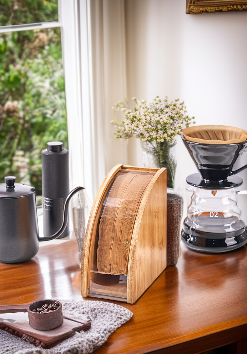 コーヒー濾紙収納ボックス 木製防塵濾紙ラック
