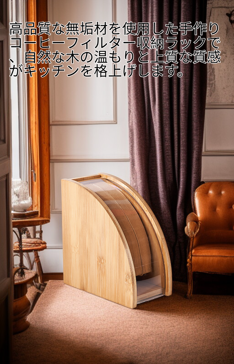 ● 高品質な無垢材を使用した手作りコーヒーフィルター収納ラックで、自然な木の温もりと上質な質感がキッチンを格上げします。